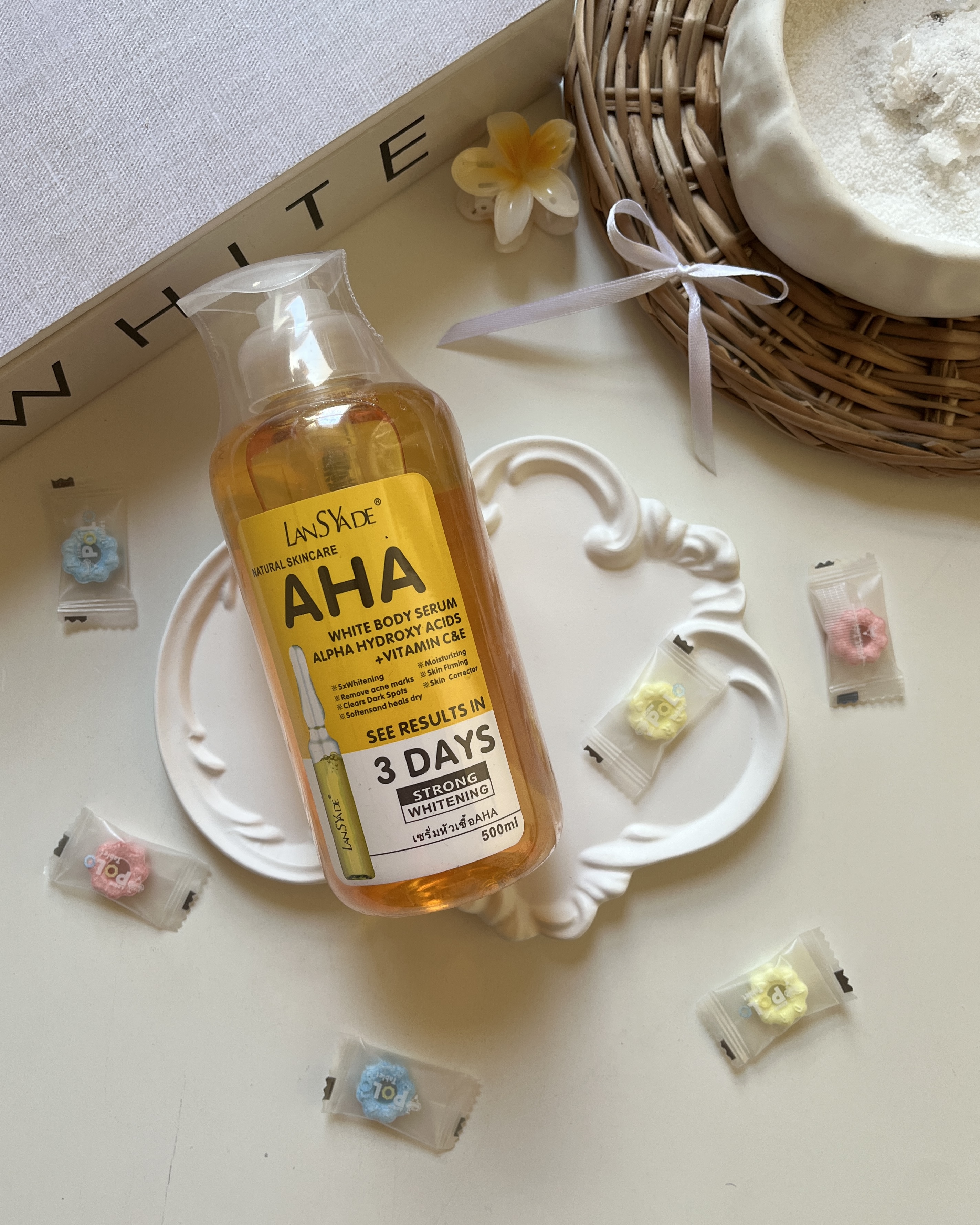 سرم لایه بردار و سفیدکننده و روشن‌کننده بدن آ اچ آ LANS ADE مدل AHA با ویتامین C و E حجم 500 میل