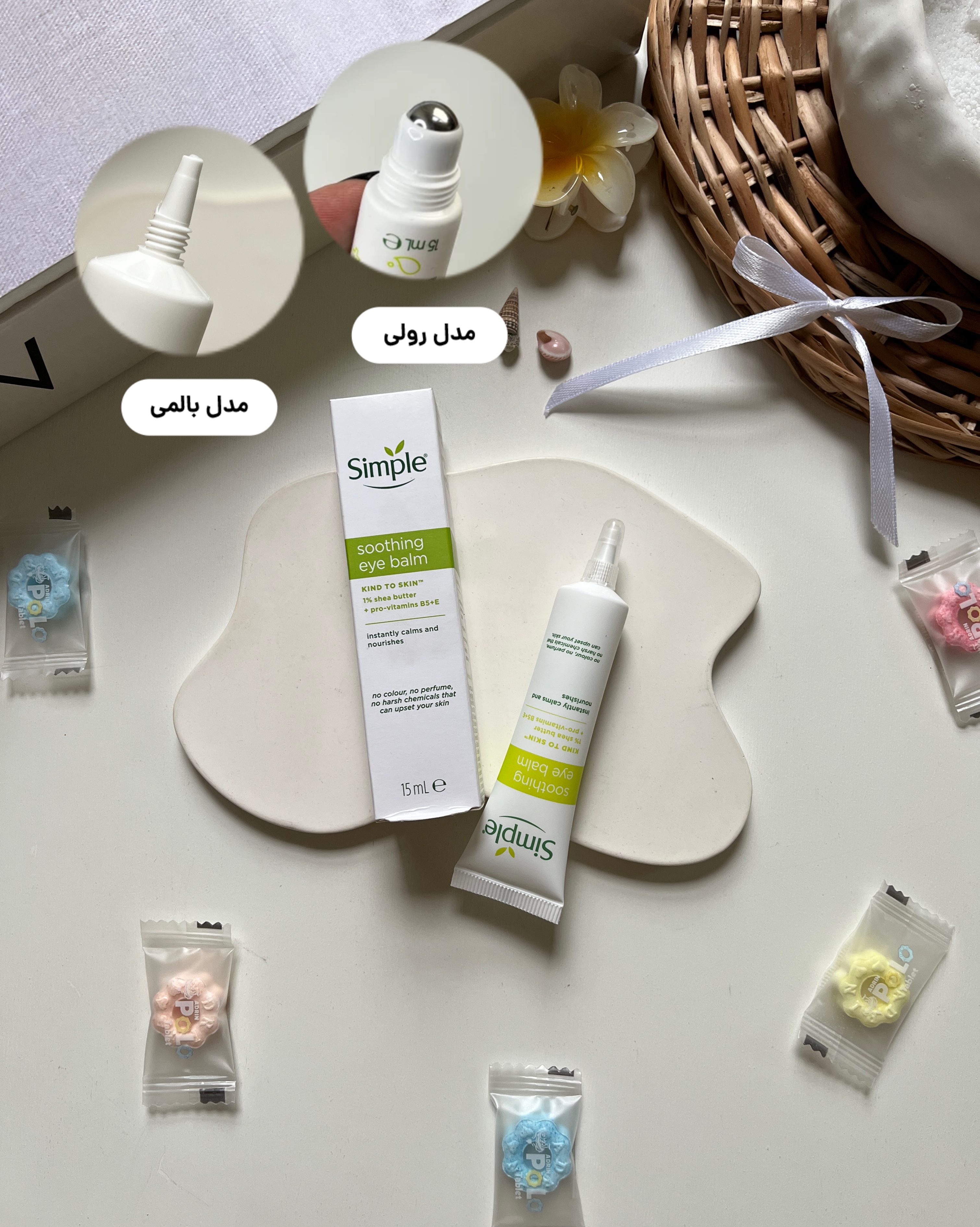 کرم دور چشم آبرسان و ضدحساسیت سیمپل simple در دو مدل بالمی و رولی مناسب انواع پوست آبرسانی پوست اطراف چشم و رفع خشکی دور چشم 15 میلی‌لیتر