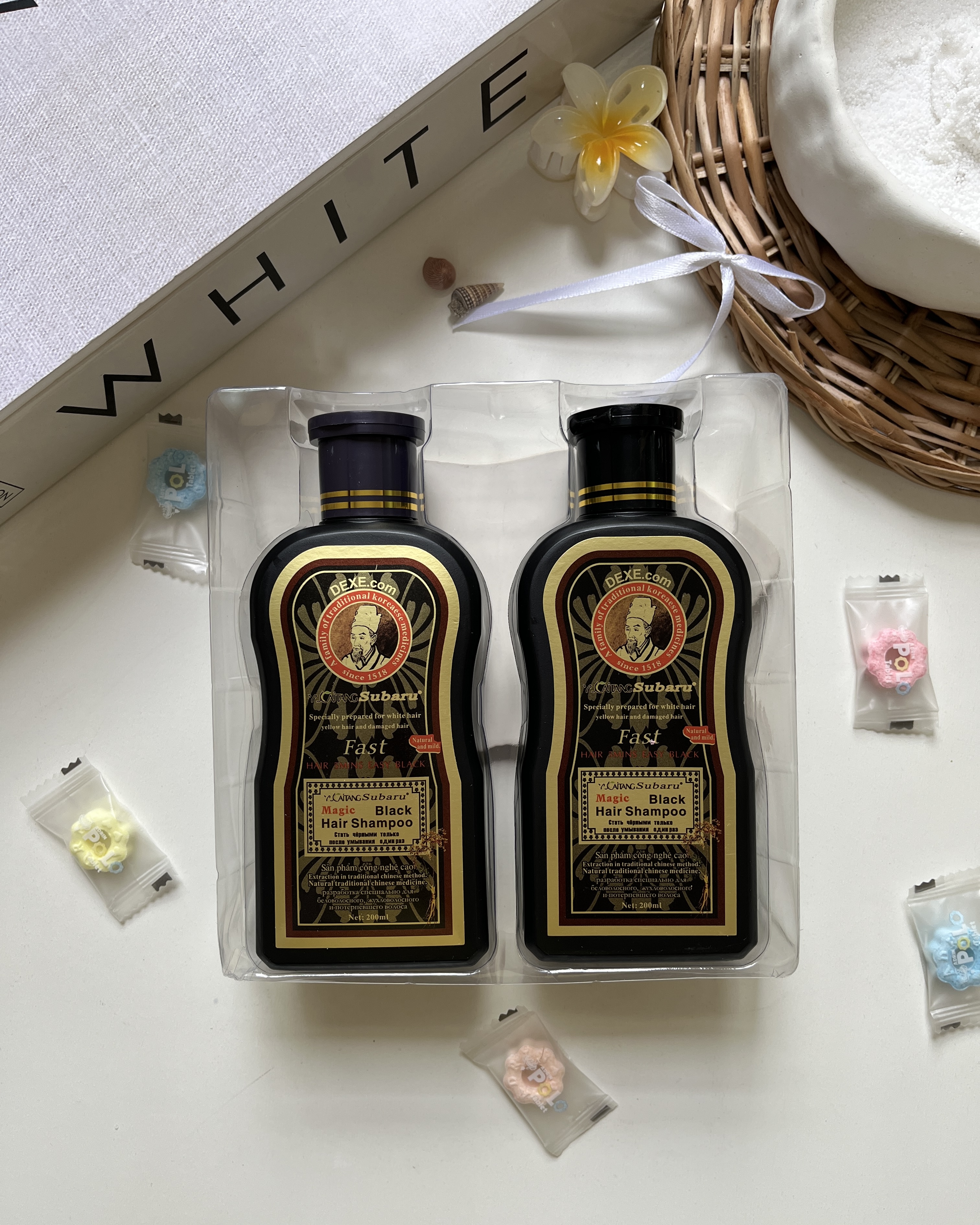 شامپو دو قلو گیاهی مشکی کننده مو آقایان و بانوران دکس سوبارو اصل مدل Magic Black Hair حجم 400 میل بازگرداننده رنگ طبیعی مو در ۵ دقیقه بدن آسیب هر بسته شامل دو عدد شامپو