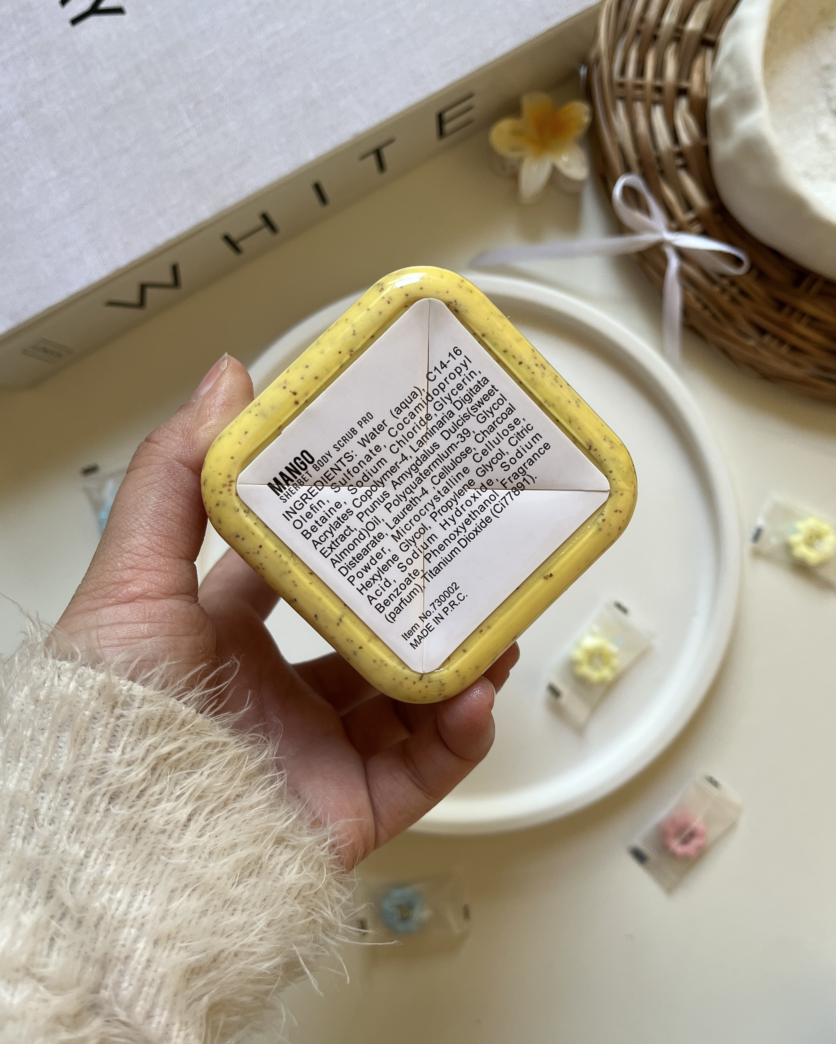 اسکراب لایه بردار و نرمکننده بدن منگو Mango دارای رایحه های میوه و گلی مناسب پاکسازی پوست و حذف سلولهای مرده حجم ۳۵۰ میل