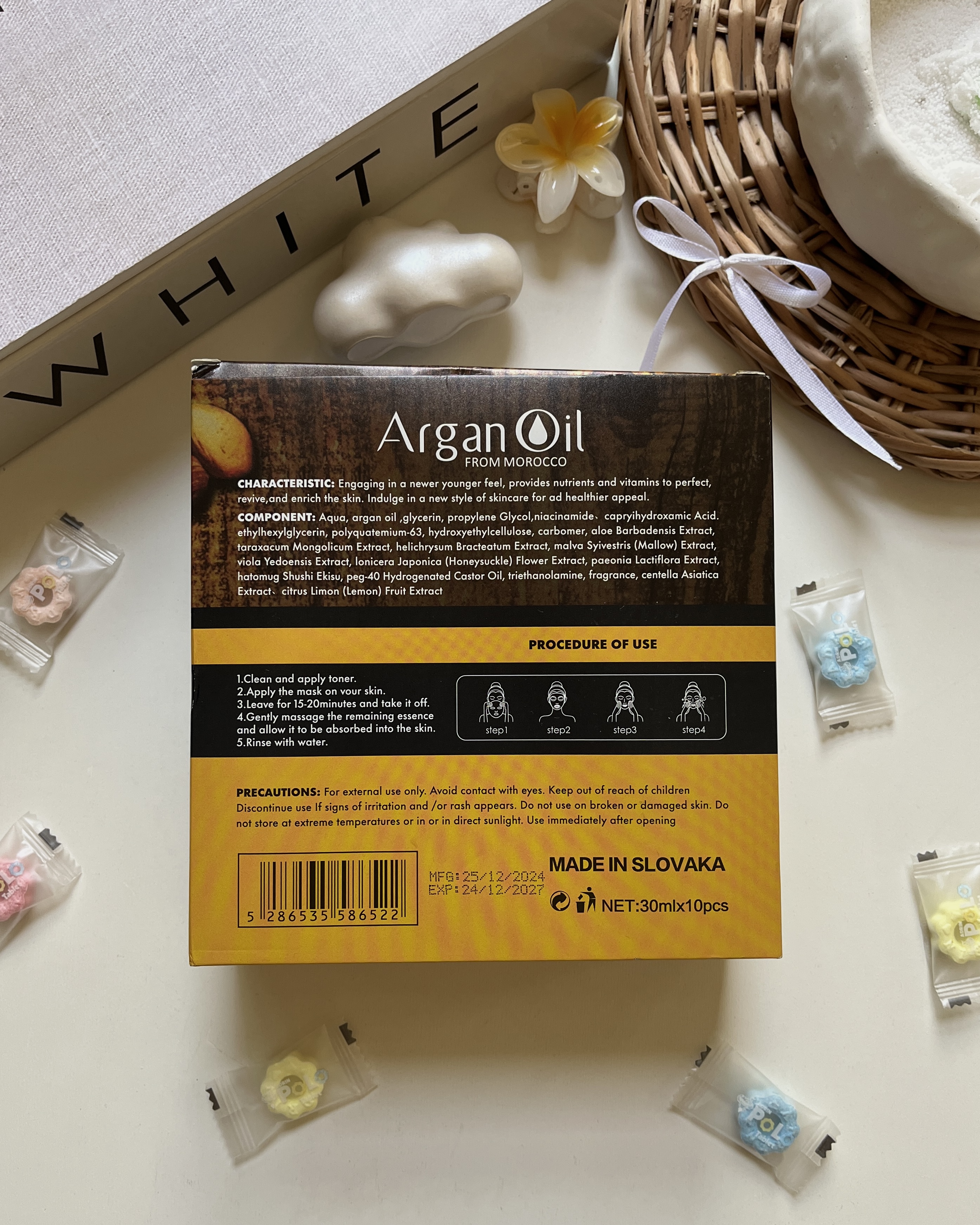 ماسک صورت آرگان لایتنس Lightness Argan Oil حاوی ۹۵ درصد روغن آرگان سفید کننده و نرم کننده و آبرسانی پوست ۱۰ عددی